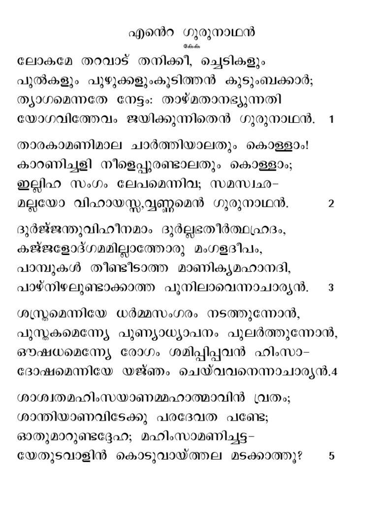 Ente Gurunathan Poem Summary In Malayalam - Read the poem and get the summary on what it all means.