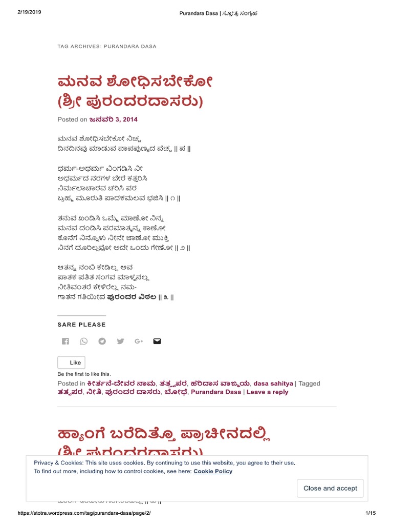 ಪುರಂದರ ದಾಸರ ಕೀರ್ತನೆಗಳು Pdf / ಪುರಂದರ ದಾಸರ ಕೀರ್ತನೆ ಭಾಗ ೪.